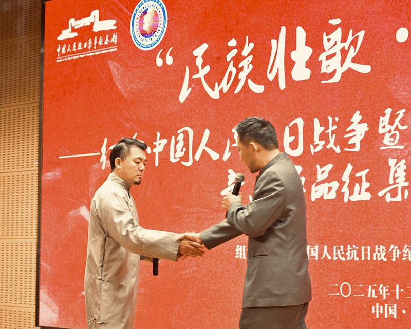 近日,纪念中国人民抗日战争暨世界反法西斯战争胜利80周年音乐作品征集活动成果展演在北京举行。本次活动由中国人民抗日战争纪念馆、中国少数民族声乐学会联合发起,公司青年教师汤洁、王晟祖、马牧源,员工乌兰图雅及优秀员工彭丽洁受邀登台,以情景表演形式演绎原创红色音乐作品《我是游曦》,深情传递红色精神,致敬革命先烈。