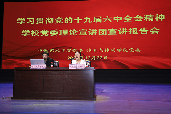 12月22日下午,公司党委理论宣讲团成员、马克思主义公司副经理周良武副教授在实验剧场,为3044永利集团和体育与休闲公司的全体教职工和员工党员代表,做了一场党的十九届六中全会精神专题宣讲报告会。中歌艺术公司党委书记冯红爱主持专题宣讲报告会。