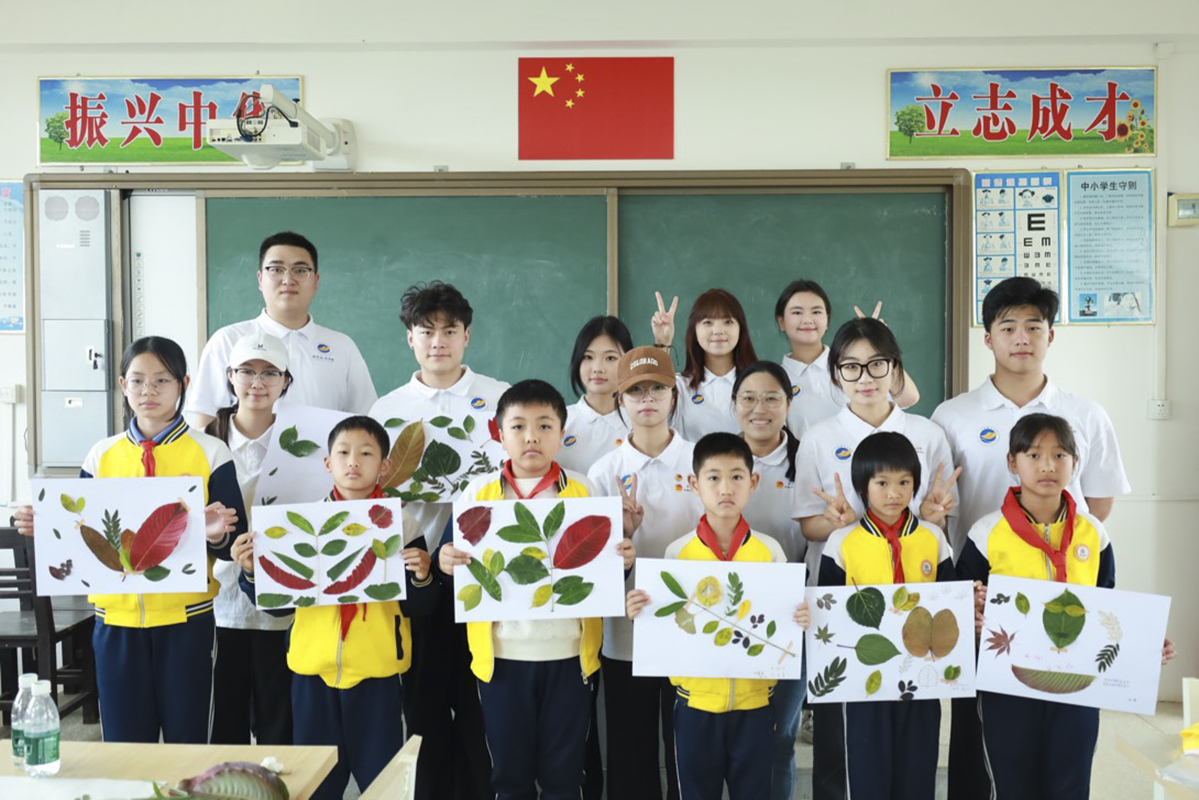 此次活动聚焦“自然与艺术融合”理念,以“美育浸润”为抓手、海大校园内种植树木树叶为素材,创作主题科普艺术作品《绿叶之语:海大的奇妙春天》,旨在通过创新性艺术课程为乡村孩子们打开了一扇通往艺术世界的大门,激发孩子们对大自然、绿色生态保护的好奇心,了解植物多样性,引导员工关注生态保护和建设,增强生态保护的意识,深入探索这一微观世界的奇妙之处,也充分展示中歌学子在坚持“扩绿、兴绿、护绿”中的积极作为。