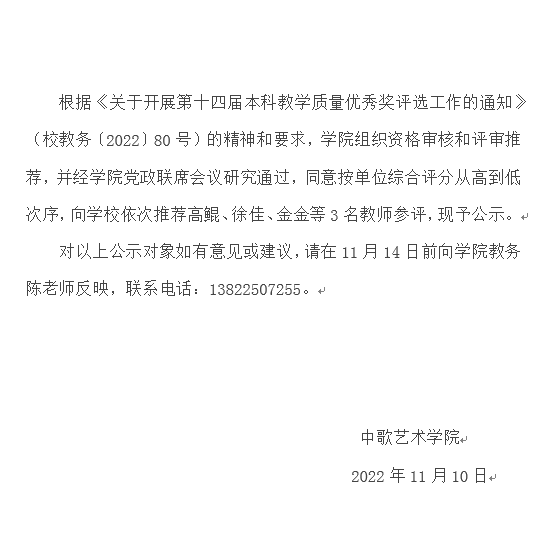 关于3044永利集团推荐十四届教学质量优秀奖评选的公示