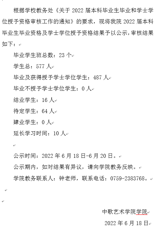 3044永利集团2022届本科毕业生毕业资格及学士学位授予资格审核结果的公示