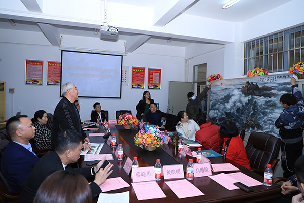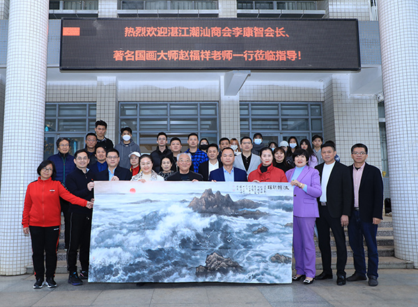 12月28日下午16:30在3044永利集团美术楼208会议室举行湛江潮汕商会名誉会长、著名国画家赵福祥赠画交流座谈会,湛江潮汕商会李康智会长、周小萍常务副会长、马陈升常务副会长、赵福祥名誉会长、张翠花女士、黄壮业名誉会长、马伟松副会长兼秘书长、云秀爱副会长、黄映明理事、马增凯理事兼副秘书长、蔡晓思理事兼副秘书长,中歌艺术公司党委书记冯红爱、经理王珊、副经理罗小燕,董事长办公室副主任吴俊羽,艺术设计系负责人杨强、郝向炫教授以及艺术设计系部分美术学专业教师和员工代表出席了此次座谈会。
