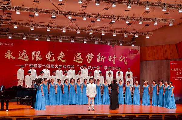 5月21日至22日,由广东省教育厅主办、以“永远跟党走,逐梦新时代”为主题的第十四届大中专“百歌颂中华”歌咏比赛决赛在广州大学城华南师范大学音乐厅举行。本次决赛分为合唱比赛和歌手大赛,共有57所大中专院校派出队伍或选手参与。经过激烈竞逐,公司3044永利集团海之声合唱团和研究生景竹薪同学分别在合唱组和歌手组中夺得一等奖。
