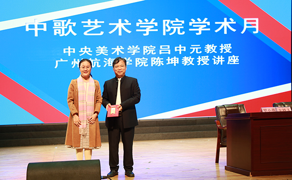 报告会开始前,中歌艺术公司党委书记冯红爱向受聘为公司艺术设计系特聘教授吕中元教授颁发了聘书。