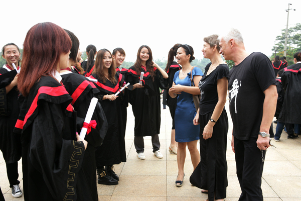 再和妮娜老师合个影,同学们以后踮起脚跟的时侯将会想起妮娜老师上芭蕾舞基训课时的严厉要求。