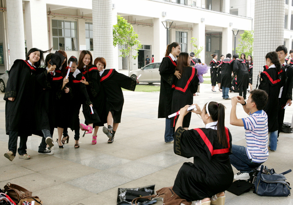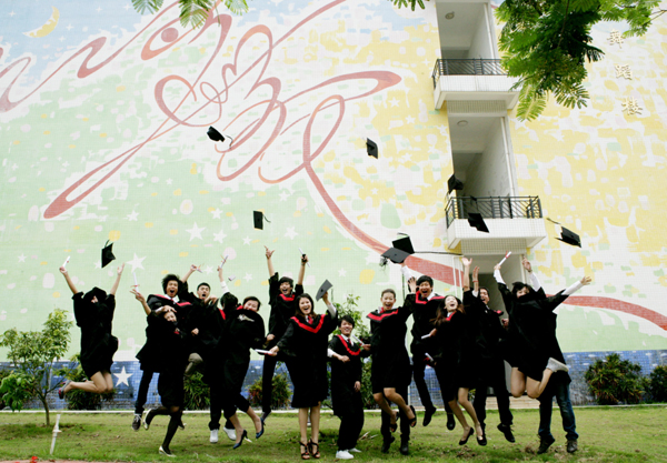 这是一张真正的毕业照。自此以后,同学们结束学业就要离开母校,踏进社会,为国效劳。这一刻,在公司领导和老师面前就再耍一次孩子气吧,将激情和留恋高高的抛洒起来,用这种方式来表达对母校、对老师的感恩之情。