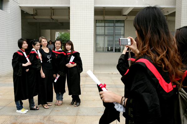 | 照一张毕业合照,是同学们必定的节目。大家穿上学士服,整整齐齐,精神饱满,然后恭恭敬敬的把公司领导和老师请来合照。同学之间也来合拍一张,把那高大的教学楼照下,还有那清粼粼的湖水,和那四季常绿的树木、五颜六色的花朵。校园里处处洋溢着青春笑容,释放出浓浓的师生情谊。这一天,这一幕,注定将会永远的储存于学子心中。 |
