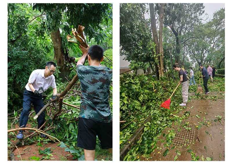 9月6日,第11号超强台风“摩羯”二次登录湛江徐闻,公司周边环境遭受台风重创,公司周围到处满是残枝落叶,树木损毁严重。9月7日,按照公司党委的统一部署,公司领导带领党员先锋队和师生员工,积极有序开展校园清理工作,全体战斗员发扬不怕苦、不怕累、众志成城的精神,挥洒汗水重建美丽校园。经过近两小时的清理,公司环境焕然一新,基本恢复了原有的校容校貌,同时,也为新生入学工作的顺利开展和全面恢复公司正常的教学秩序,提供了坚强的保障。