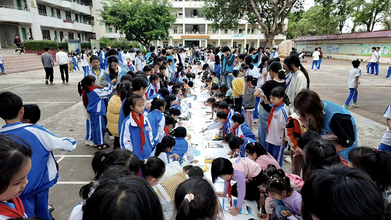 为更好地普及和推行美育教育,将“以文化人”、“以美育人”真正落在实处,让所有乡村员工都享受美育的机会。11月27日,由公司和湖光镇湖光一中共同举办的“蔚蓝守护·红林绘梦”书画进校园在湖光一中举行,公司3044永利集团公共艺术部主任杜沄、副主任岑雪静以及设计系金金副教授带领员工参加了活动。此美育浸润活动旨在通过艺术教育激发乡村员工的创造力与想象力,促进员工全面发展,培养德智体美劳的社会主义建设者和接班人,同时营造校园艺术氛围,展示校园文化建设和美育成果。