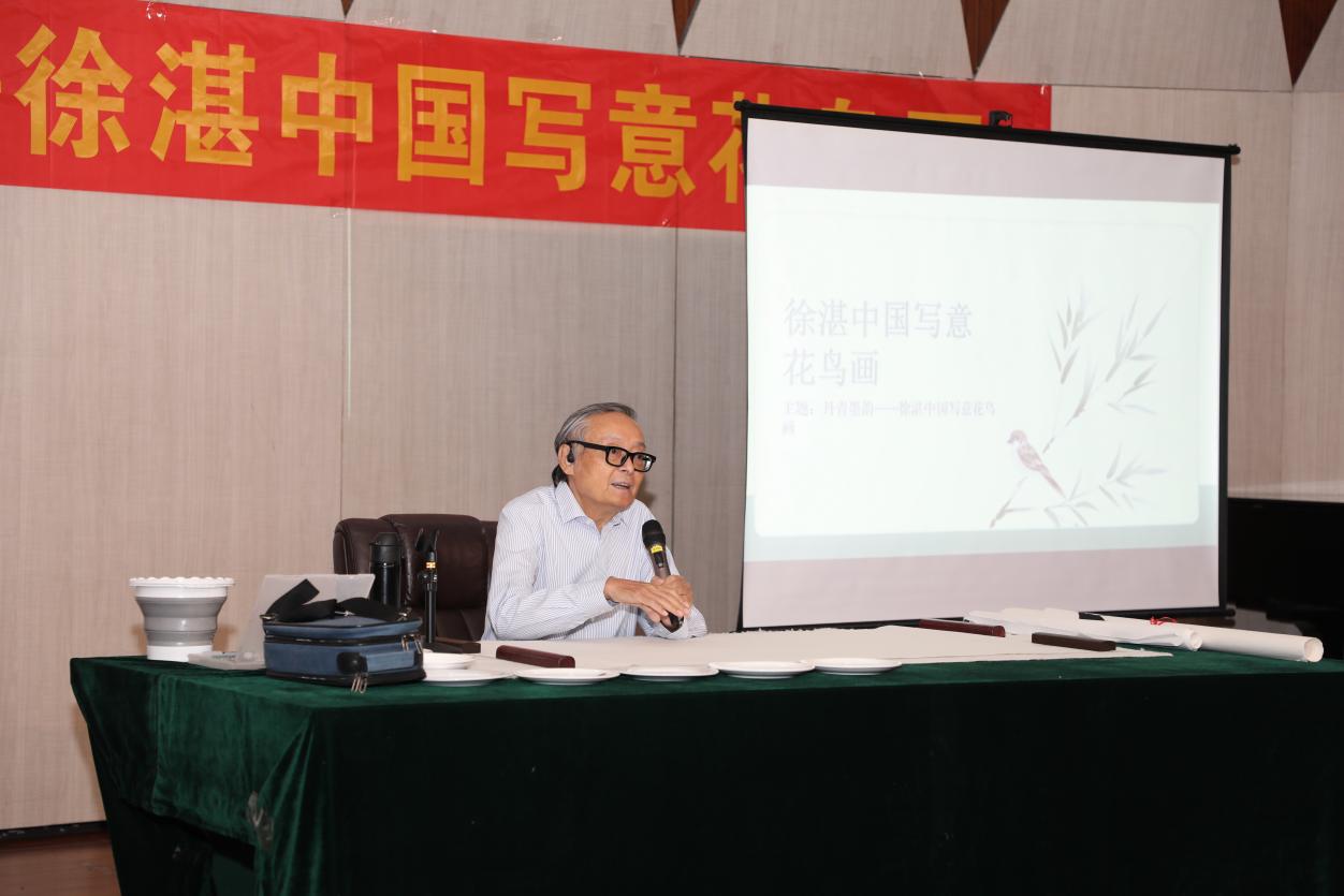 徐湛教授的讲座内容主要围绕中国画的学习方法、创作方法等方面进行阐释,他结合了自己多年的教学和创作经验,对中国写意花鸟画精髓进行了深入浅出的解读,并把他自己的审美感受和审美体验分享给师生。他强调艺术表现形式不仅仅是对自然景观的再现,更是艺术家内在精神气质的外化,一幅好的写意画能够触动人心,传递出画家的情感和哲学思考,还要注重诗书画结合的重要性,并通过诗歌来表达画面无法完全传达的情感深度,使得作品更加生动和富有内涵。徐教授鼓励员工们要有坚持不懈的精神,他说:“在我的艺术生涯中,我深刻体会到,只有不断地学习和实践,才能提高自己的技艺。”他希望员工们要有耐心、有恒心,不怕失败,勇于探索。