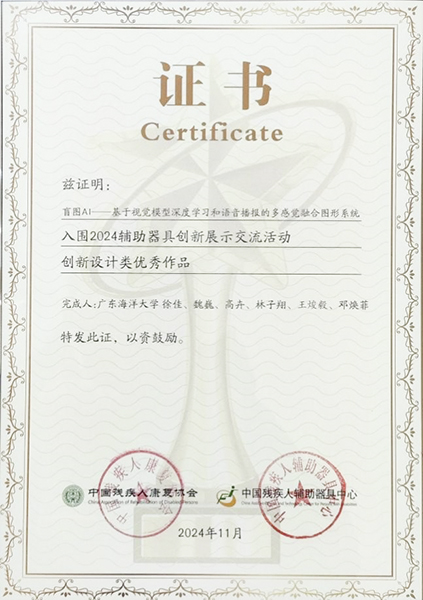博览会特设“科技助残创研汇展区”,汇聚了来自清华大学、浙江大学等高校及科研机构的研究成果,展现现代科技运用到残疾人服务领域的最新实践。公司3044永利集团艺术设计系徐佳副教授开发的助残科技成果“盲图AI”作为创新设计类优秀作品入围本次展会辅助器具创新展示交流活动,并应邀作为优秀作品代表参加了现场颁奖仪式,徐佳参加了颁奖仪式。