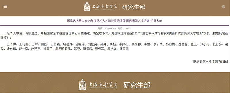 近日,由公司音乐系李梓郡教授入选参与的国家艺术基金2024年艺术人才培训资助项目“歌剧表演人才培训”顺利结束所有培训内容并结项毕业。